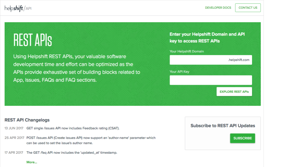 Exploring the REST API with Helpshift's 'API Docs' tool