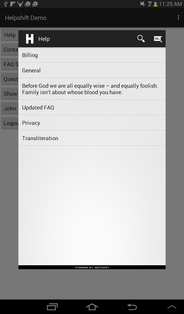 using Helpshift;